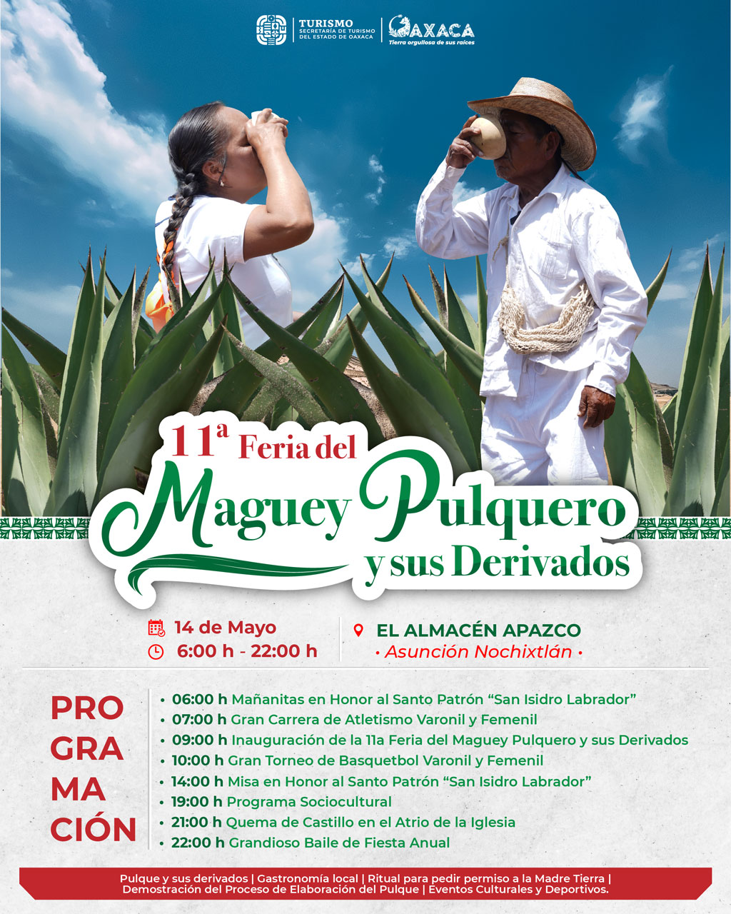 El Almacén Apazco, Nochixtlán invita a su Fiesta Patronal y a la Feria del Maguey Pulquero y sus Derivados este 14 de mayo, a partir de las 6 de la mañana hasta las 10 de la noche.