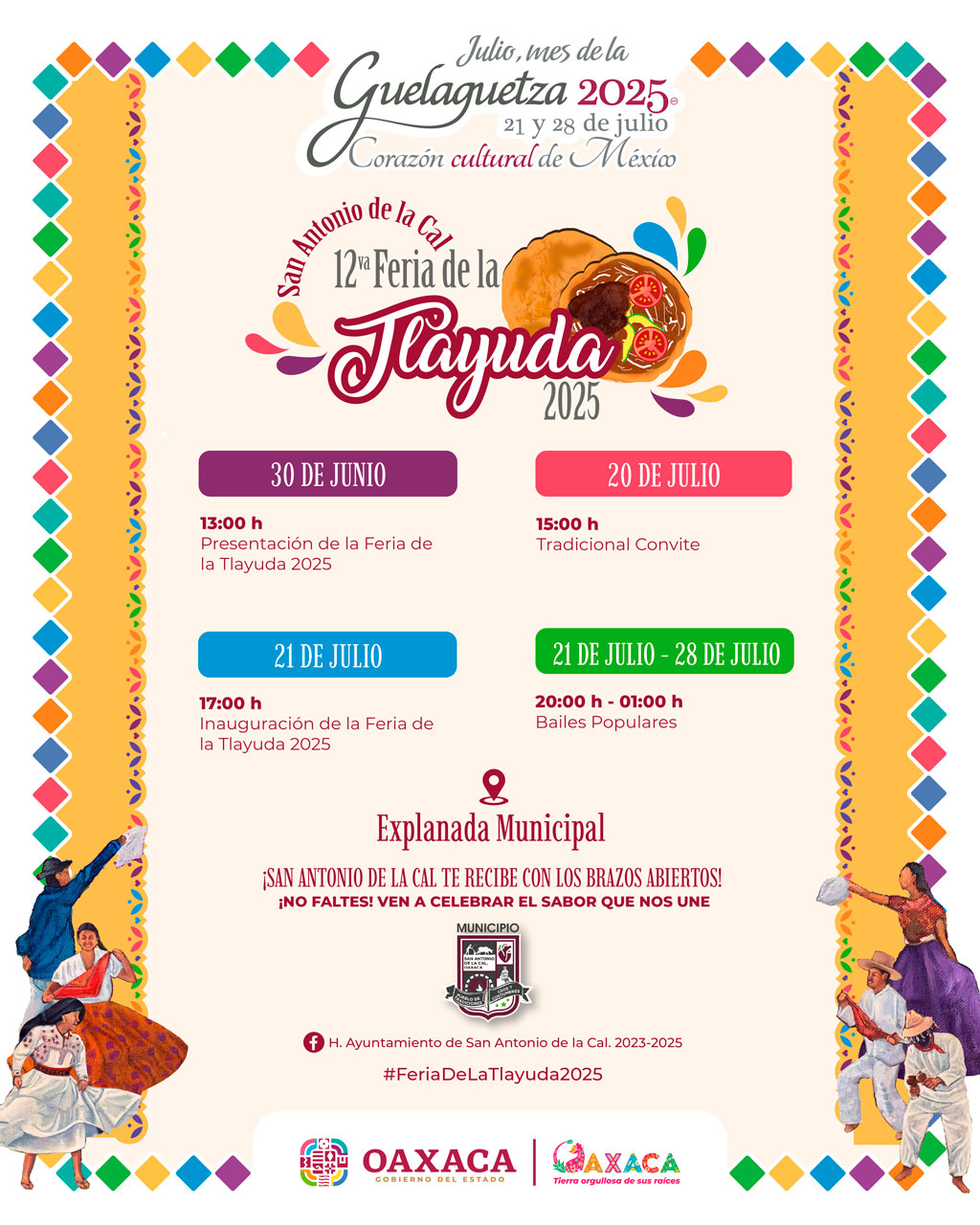 ¡La Feria de la Tlayuda 2025 en San Antonio de la Cal está por comenzar! Una cita imperdible para deleitarte con la gastronomía oaxaqueña en su máxima expresión.