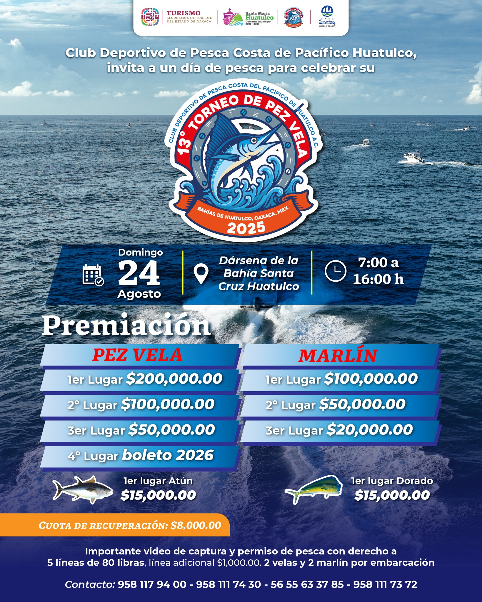 Este domingo 24 de agosto de 2025, la Dársena de la Bahía Santa Cruz Huatulco será el punto de encuentro para un día lleno de adrenalina y grandes premios.