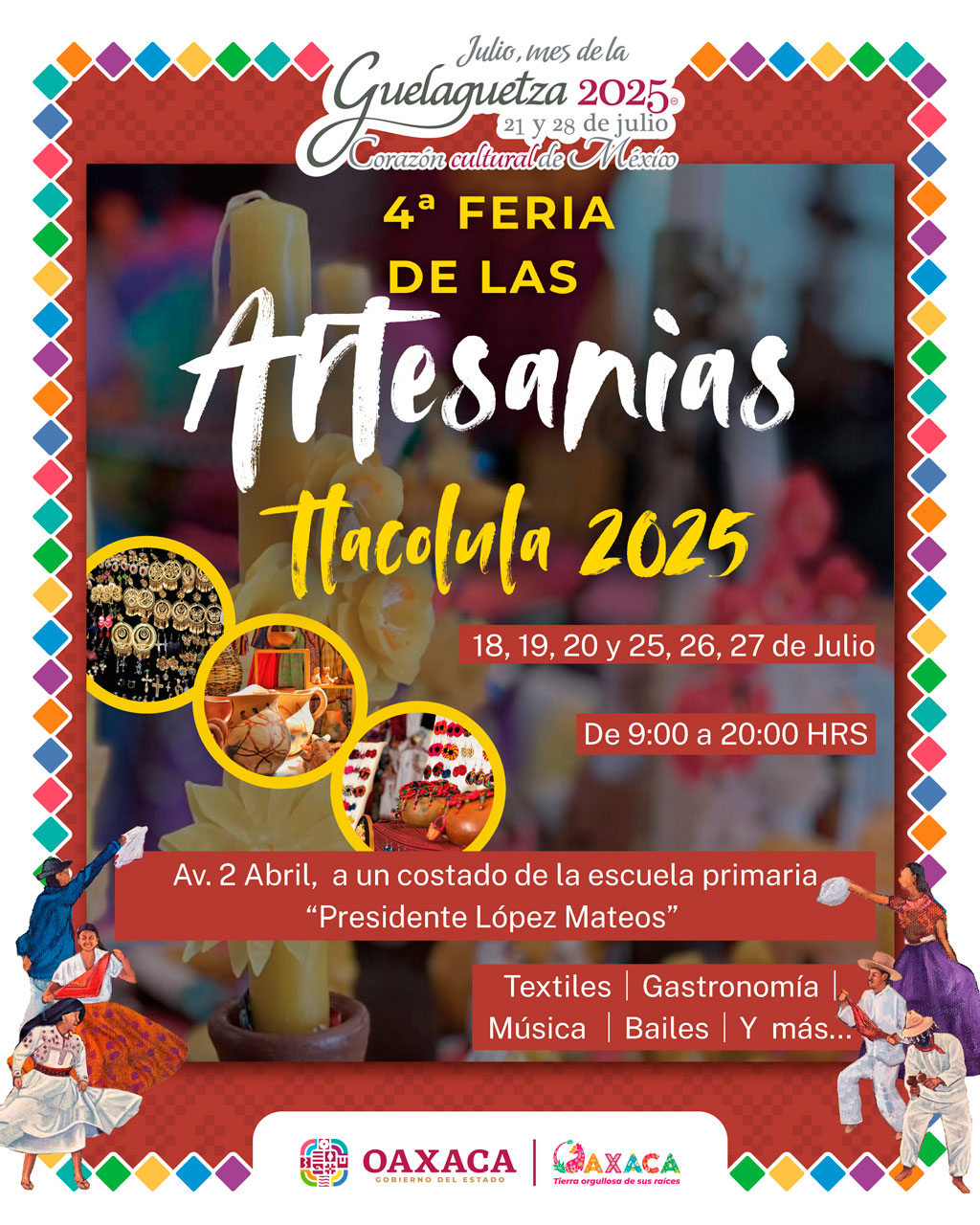 Tlacolula de Matamoros, un destino emblemático de Oaxaca celebrará con alegría su Cuarta Feria de las Artesanías, en el marco de las fiestas de Julio, mes de la #Guelaguetza2025.
