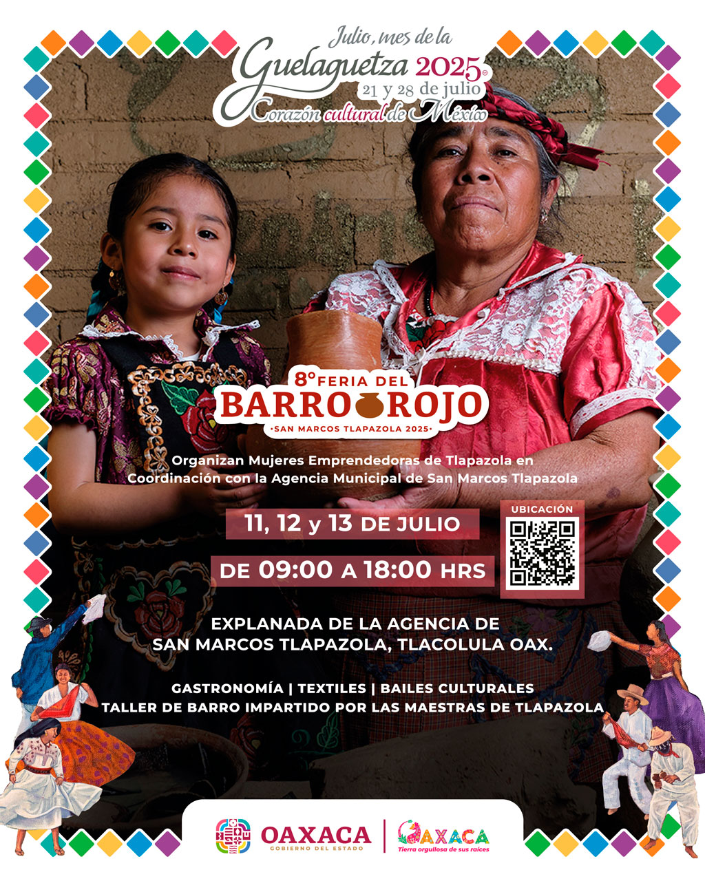 A tan solo una hora de la Ciudad de Oaxaca, San Marcos Tlapazola abre sus puertas para celebrar la Feria del Barro Rojo, los días 11, 12 y 13 de julio en un horario de 9:00 a 18:00 h, en la Explanada de su Agencia Municipal.