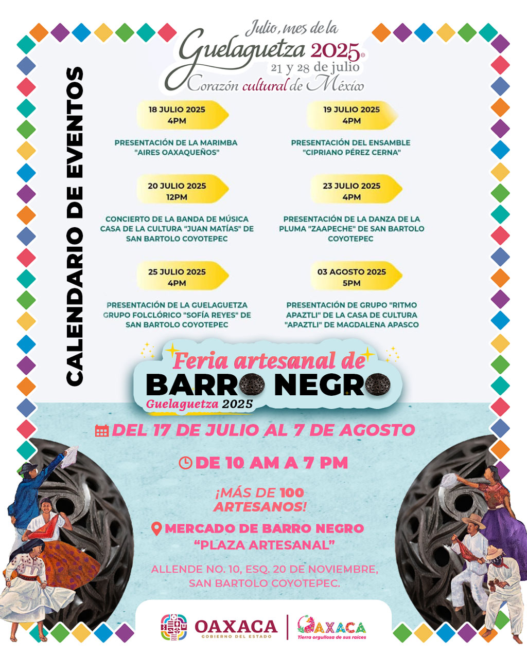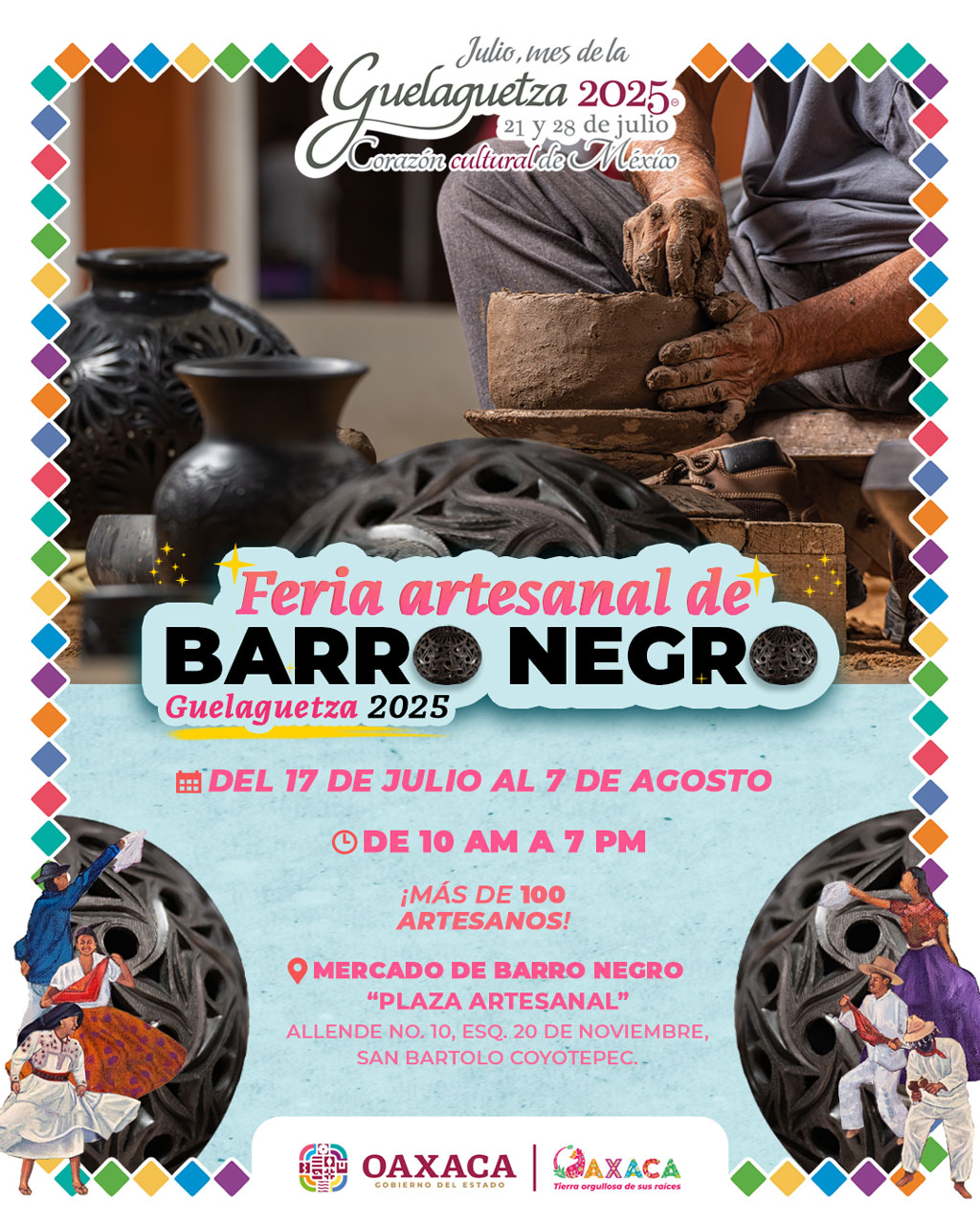 A solo 30 minutos de la Ciudad de Oaxaca, San Bartolo Coyotepec celebrará su Feria Artesanal de Barro Negro Guelaguetza 2025 en el Mercado de Barro Negro “Plaza Artesanal”, un espacio donde la tradición toma forma en cada pieza, moldeada con paciencia, maestría y profundo arraigo cultural.