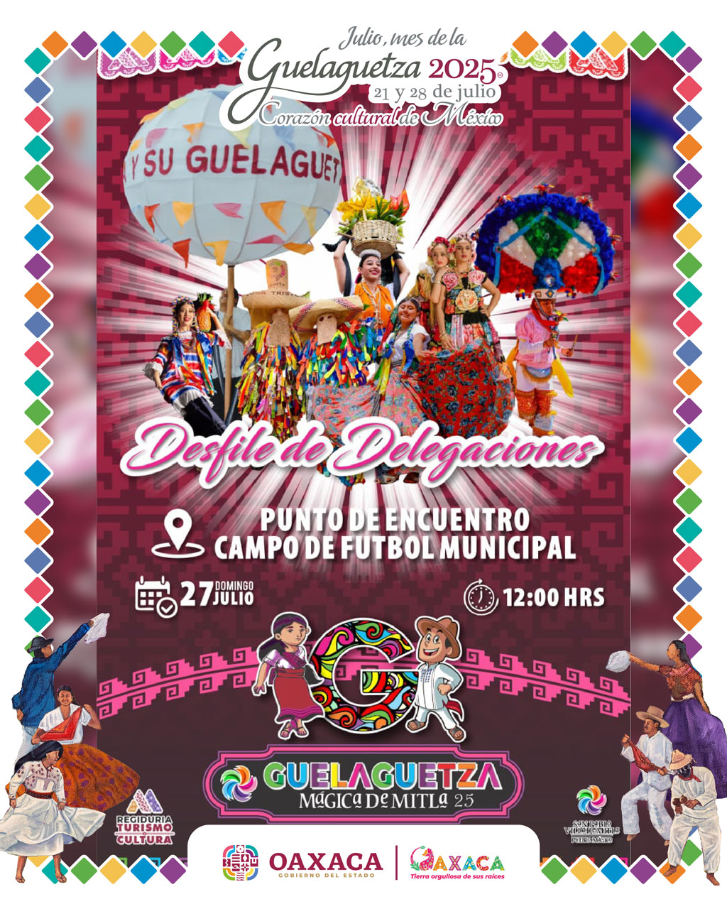¡Guelaguetza en el Pueblo Mágico de Mitla! Este domingo 27 de julio a partir de las 12 h.