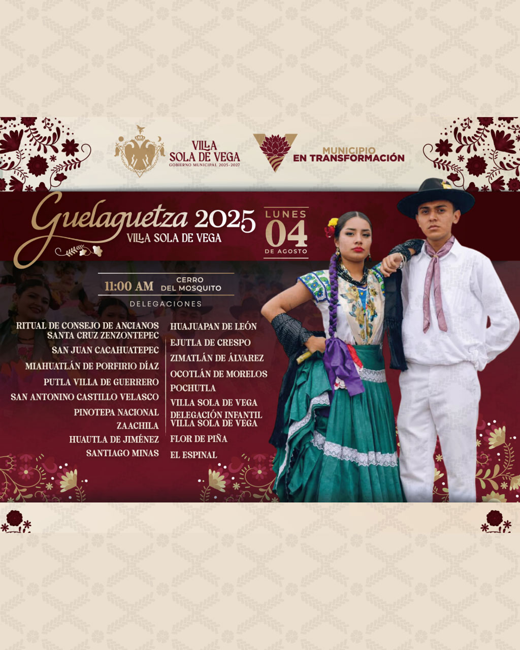 Villa Sola de Vega se llena de fiesta, color y tradición con la Guelaguetza Solteca 2025, una celebración que honra nuestras raíces y enaltece el espíritu de comunidad que nos distingue.