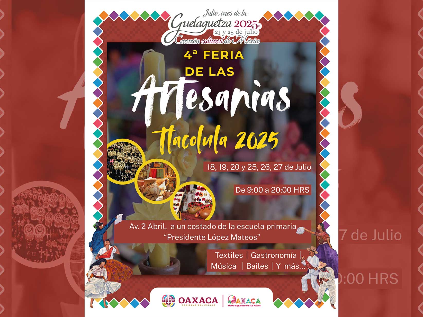 Tlacolula de Matamoros, un destino emblemático de Oaxaca celebrará con alegría su Cuarta Feria de las Artesanías, en el marco de las fiestas de Julio, mes de la #Guelaguetza2025.