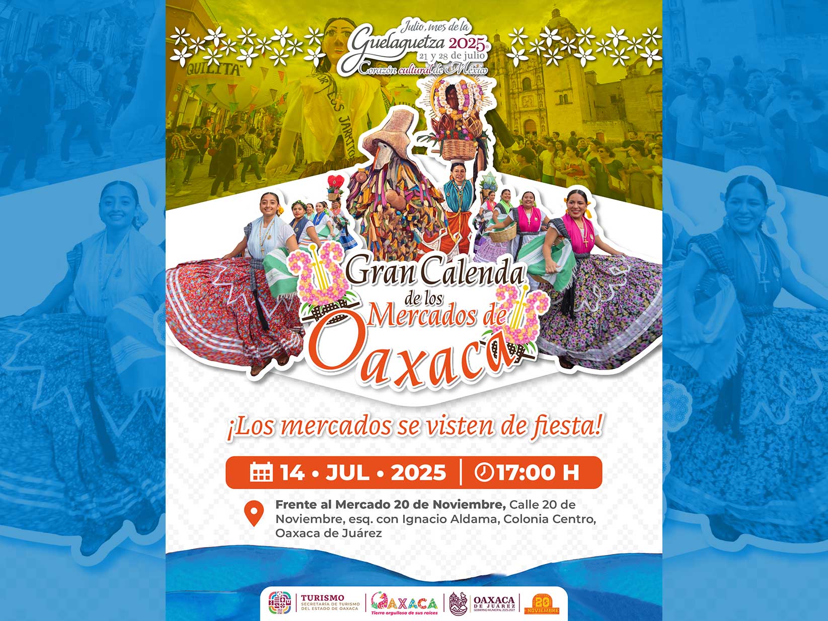 ¡Este lunes los mercados de Oaxaca se unen para celebrar la Gran Calenda de los Mercados 2025!, a partir de las 5 de la tarde, frente al Mercado 20 de Noviembre.