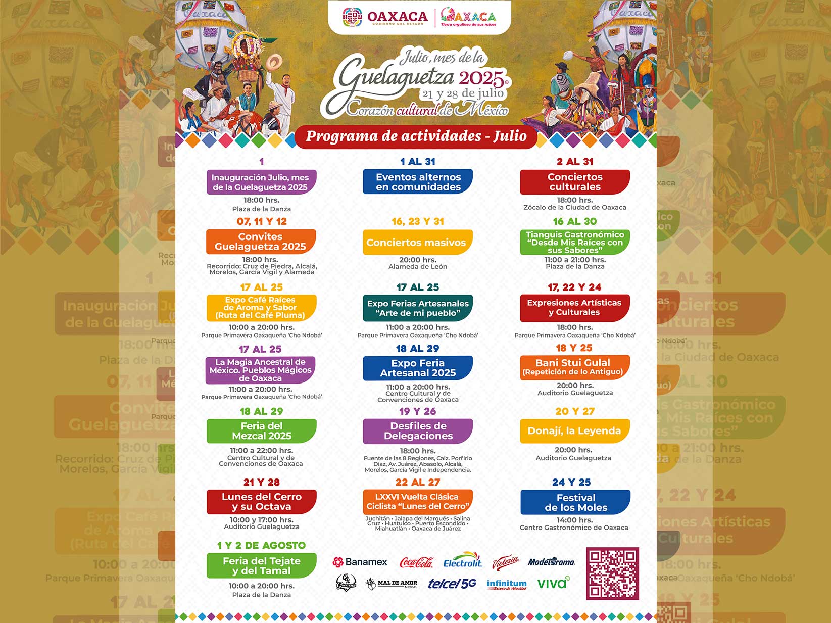 Consulta el programa oficial de la #Guelaguetza2025 y disfruta de todas las actividades y eventos que tenemos.