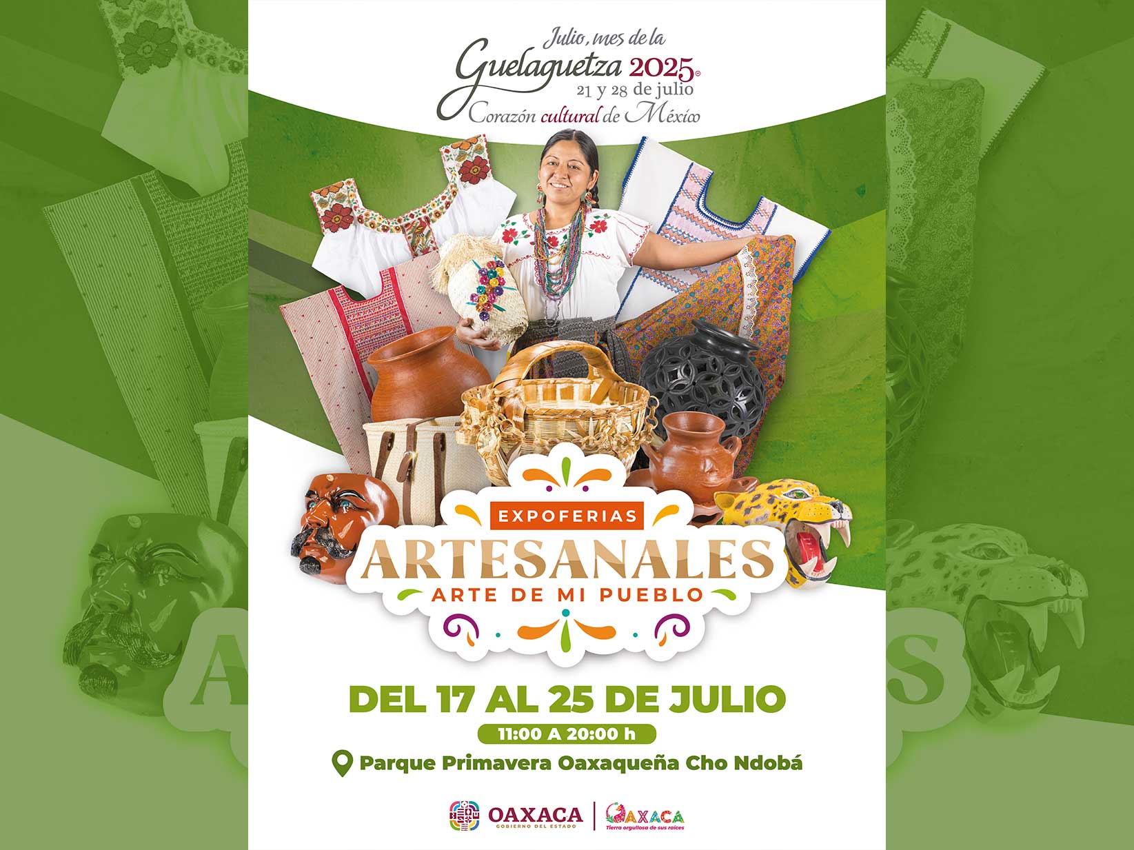 La riqueza cultural de Oaxaca se expresa en cada pieza de arte textil, alfarería, tallado y mucho más en las Expoferias Artesanales “Arte de mi Pueblo”. ¡Ven y descubre un pedacito de Oaxaca para llevar contigo!