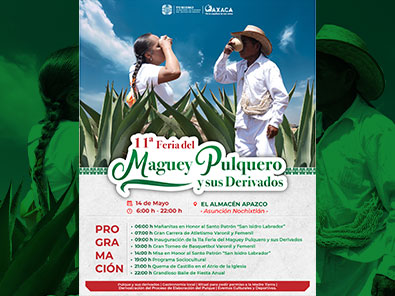 El Almacén Apazco, Nochixtlán invita a su Fiesta Patronal y a la Feria del Maguey Pulquero y sus Derivados este 14 de mayo, a partir de las 6 de la mañana hasta las 10 de la noche.