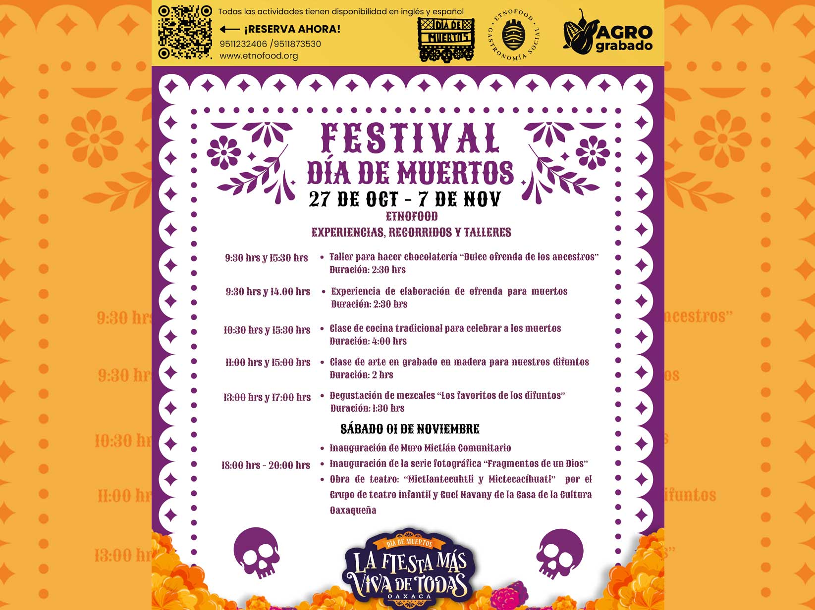 Del 27 de octubre al 7 de noviembre, vive la magia del Festival de Día de Muertos, una celebración que llena de color y tradición nuestra Tierra Orgullosa de sus Raíces.