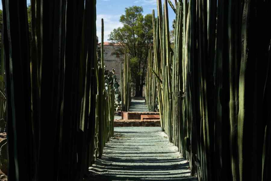 Desde entonces, este extraordinario espacio se ha dedicado a mostrar la riqueza vegetal del estado a visitantes de todas partes del mundo, destacando que Oaxaca es una de las regiones con mayor biodiversidad del país. Todas las plantas que lo conforman fueron trasladadas desde diferentes rincones del territorio oaxaqueño y cada una cuenta una historia distinta. Aquí conviven especies de bosques húmedos, zonas tropicales, montañas templadas y regiones frías, creando un mosaico natural único. El recorrido permite descubrir plantas medicinales, comestibles, muchas de ellas esenciales en la cocina tradicional, y una zona especial de “rescate”, donde crecen agaves y cactus salvados de proyectos de construcción en otras partes del estado. Entre las especies ceremoniales destacan el mezquite y el copal, cuya resina se utiliza como incienso y cuya madera da vida a los alebrijes; sin olvidar los agaves, base del emblemático mezcal oaxaqueño. También existe un espacio dedicado a cultivos tradicionales como la hierba de conejo, maíz, frijol, chepil, ingrediente clave del tamal del mismo nombre, jícama, amaranto, tomate, chía y muchas más.
